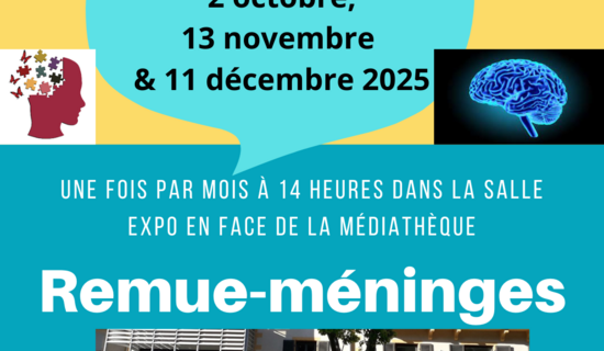 04/09/2025 Retour des ateliers "Remue-méninges" en septembre ! Exercices ludiques proposé par les bénévoles de la médiathèque Premier atelier "remue-méninges" le ... Médiathèque