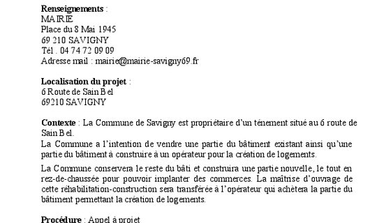 27/07/2025 Publication de l'Appel à projet aménagement centre bourg Consultation d'opérateurs pour la construction d'un petit immeuble de logements et transfert de la ...