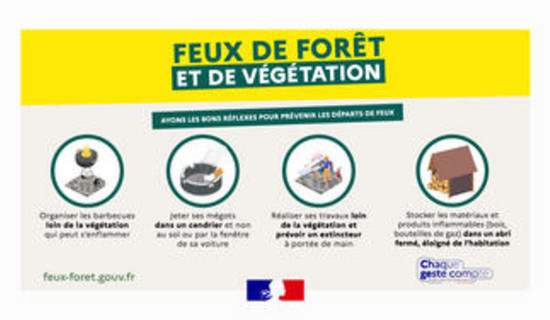 30/06/2025 Campagne gouvernementale de prévention des feux de forêt et de végétation 2025 Ayez les bons réflexes pour éviter les départs de feux Afin de renforcer la prévention contre les ...