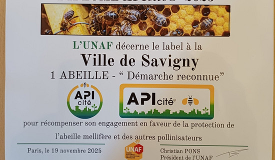 24/11/2025 Savigny décroche sa première abeille du label Apicité ! Monique Laurent était présente à la cérémonie pour la remise de notre première abeille, démarche ...