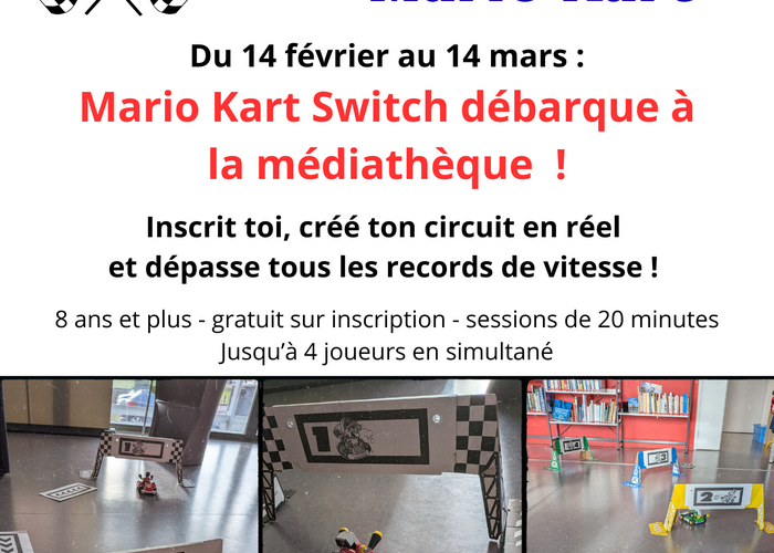 Mario Kart Switch est à la médiathèque ! Du 14 février au 14 mars Seul ou à plusieurs : créé ton…