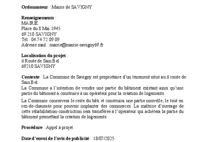 Consultation d'opérateurs pour la construction d'un petit immeuble de logements et transfert de la…