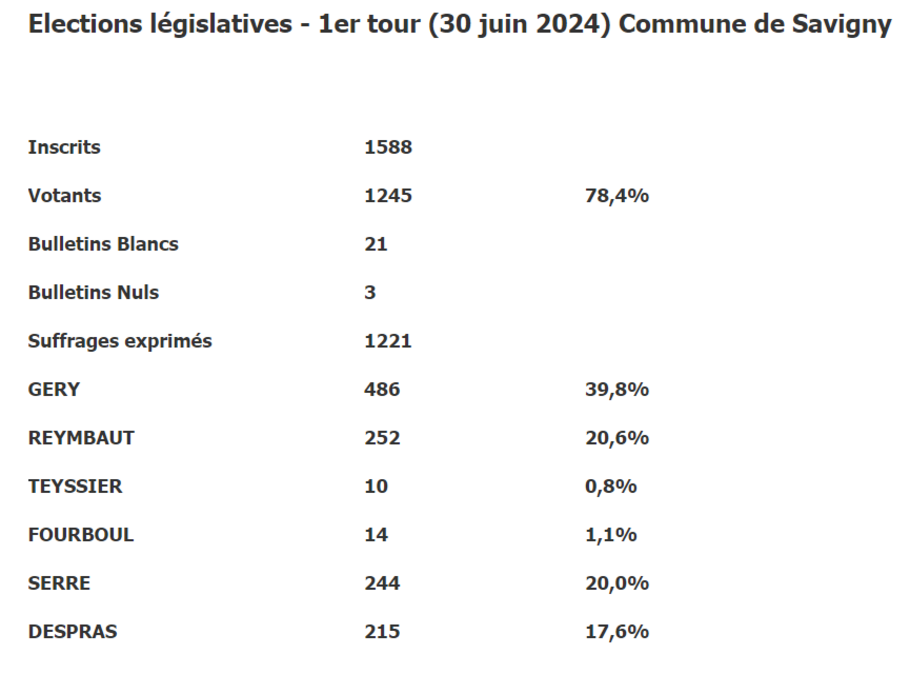 Résultats 1er tour des législatives à Savigny
